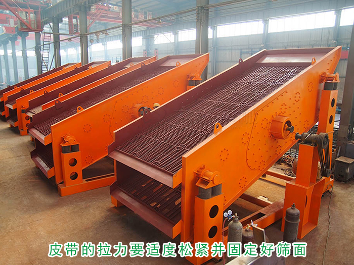 開始安裝時,電動機(jī)的水平應(yīng)矯正好,兩皮帶輪對應(yīng)槽溝的中心線應(yīng)當(dāng)重合,三角皮帶的拉力要適度松緊,然后按要求安裝并固定好篩面。